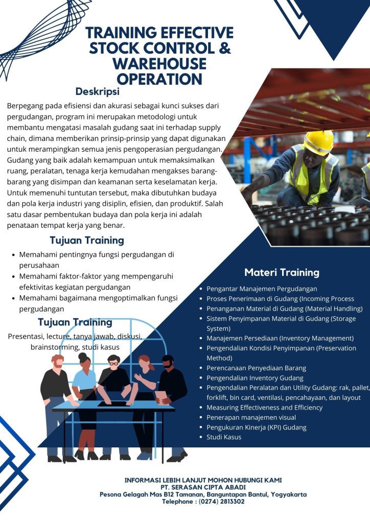 DESKRIPSI Berpegang pada efisiensi dan akurasi sebagai kunci sukses dari pergudangan, program ini merupakanmetodologi untuk membantu mengatasi masalah gudang saat ini terhadap supply chain, dimanamemberikan prinsip-prinsip yang dapat digunakan untuk merampingkan semua jenis pengoperasianpergudangan. Gudang yang baik adalah kemampuan untuk memaksimalkan ruang, peralatan, tenaga kerjakemudahan mengakses barang-barang yang disimpan dan keamanan serta keselamatan kerja. Untukmemenuhi […]